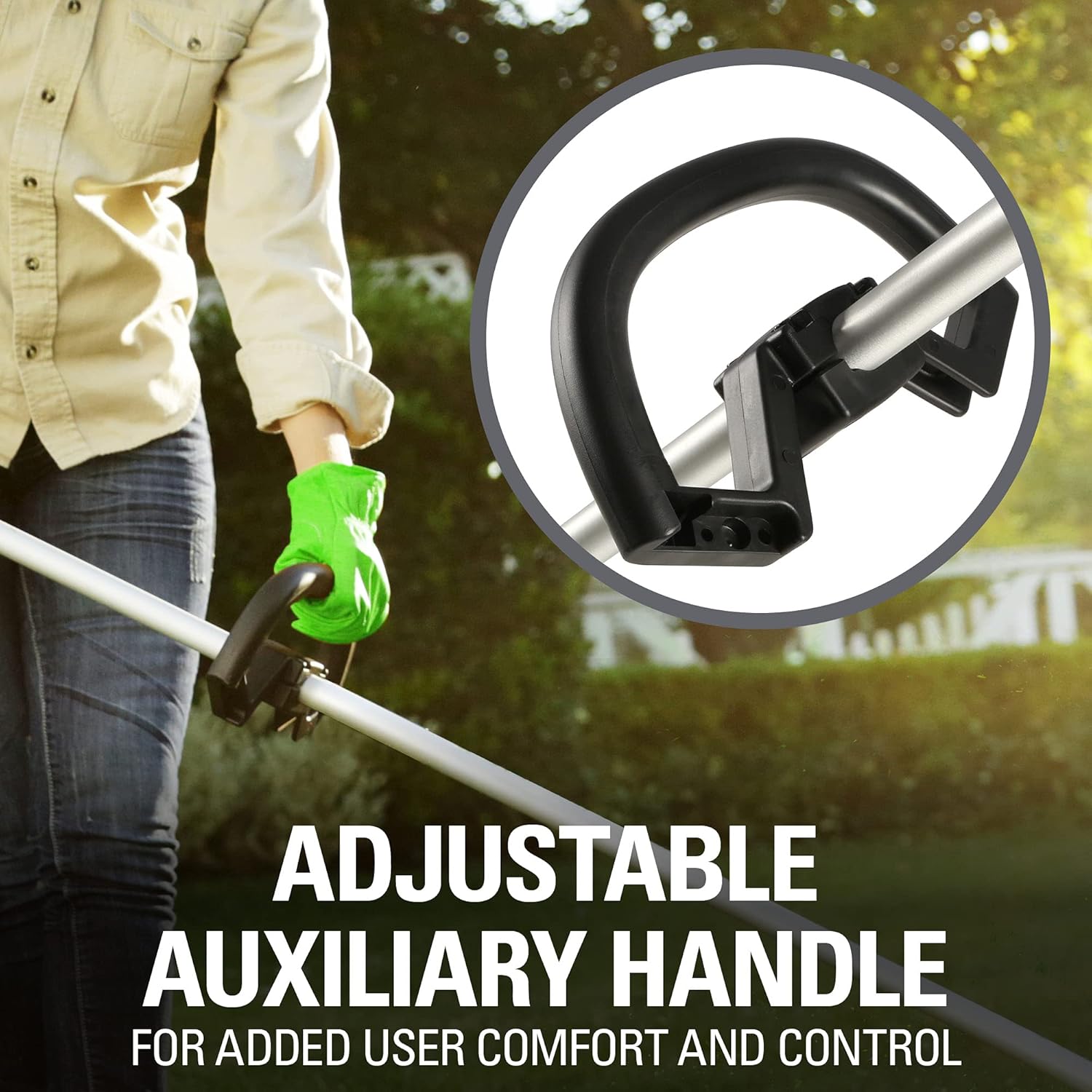 - Adjustable auxiliary handle for added user comfort and control