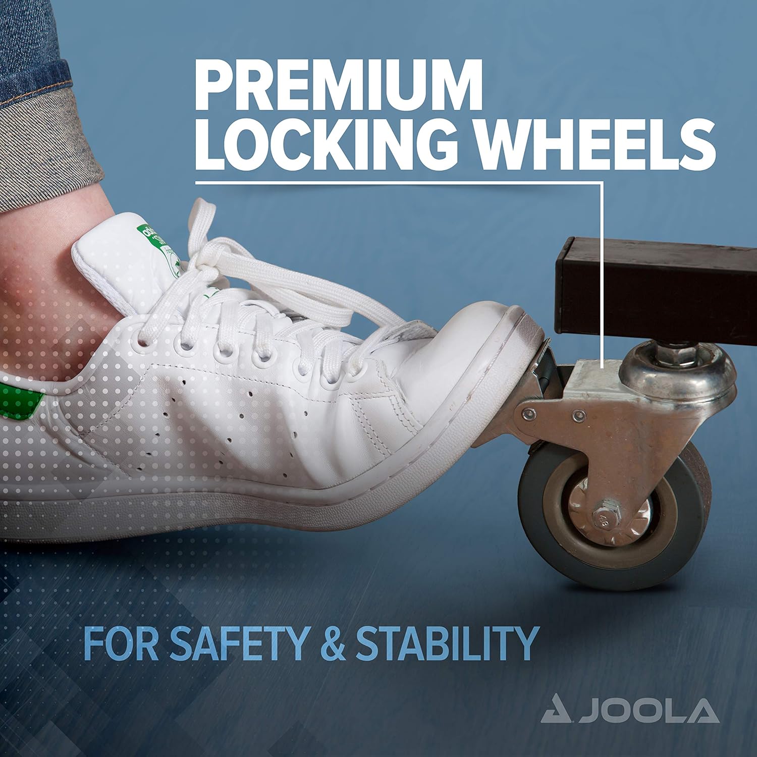 - SAFE. MOBILE. COMPACT STORAGE: The 2 halves and 3" lockable wheels and casters makes this ping pong table easy to roll and move around when not in use. Can be used as an outdoor ping pong table on a clear. sunny day. Does not include ping pong paddles