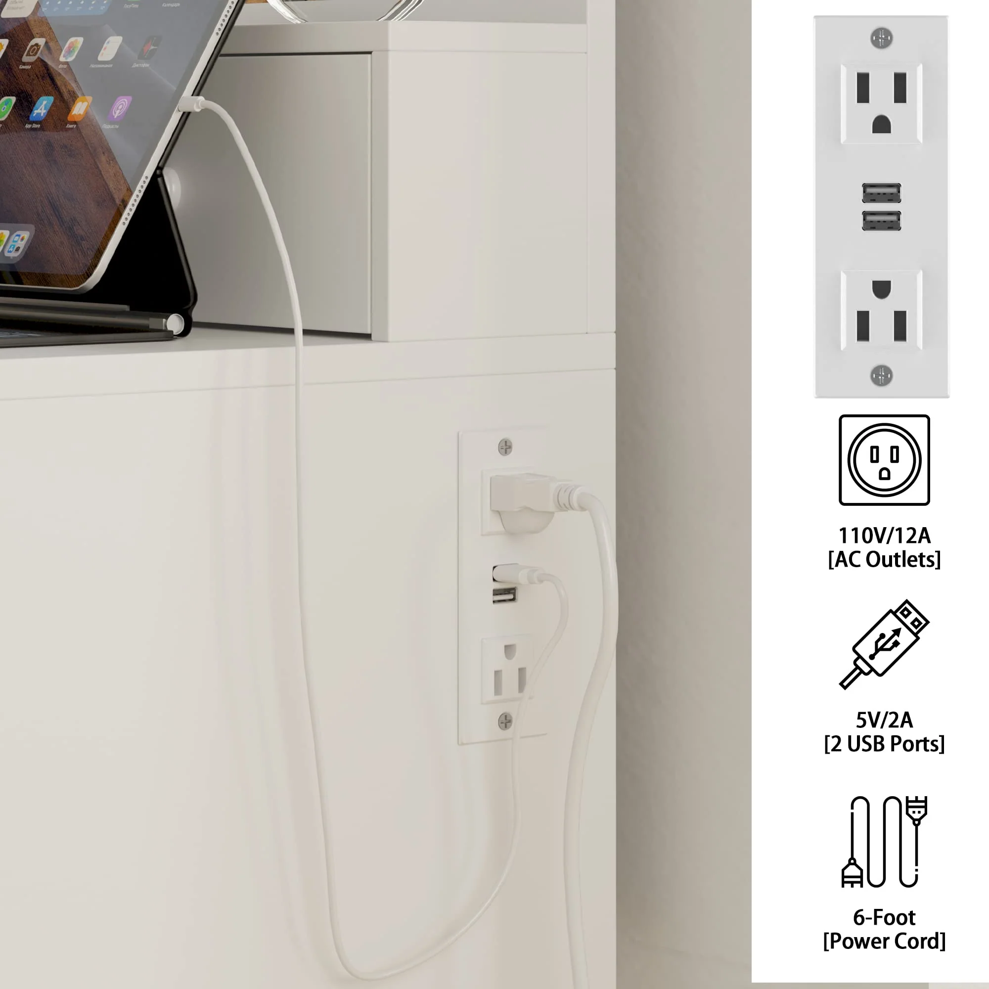 - Vanity Table with Charging Station: This makeup vanity features a charging station, includes 2 standard plug sockets and 2 USB ports, which can be more convenient to connect your hair dryer, curling iron, and it can also charge your phone, tablet or other mobile devices, allowing you to take a beautiful selfie when you finished your makeup