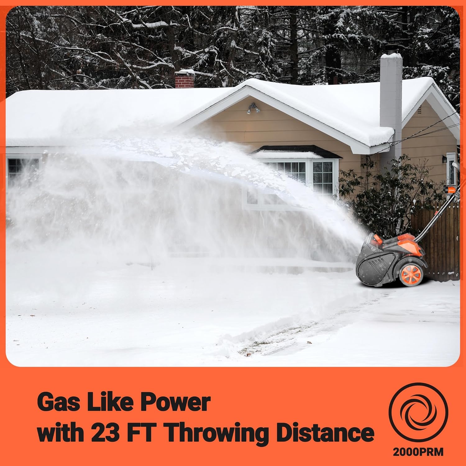- ADJUSTABLE PLATE & USER-FRIENDLY - Unlike traditional snow blowers, our snow shovel battery powered requires no complicated assembly. Just simply press the safety switch and hold the trigger to start your snow removal work. Additionally, our battery powered snow shovel is equipped with a rechargeable LED light and a 30-degree adjustable plate, allowing you to handle snow effortlessly, whether day or night.