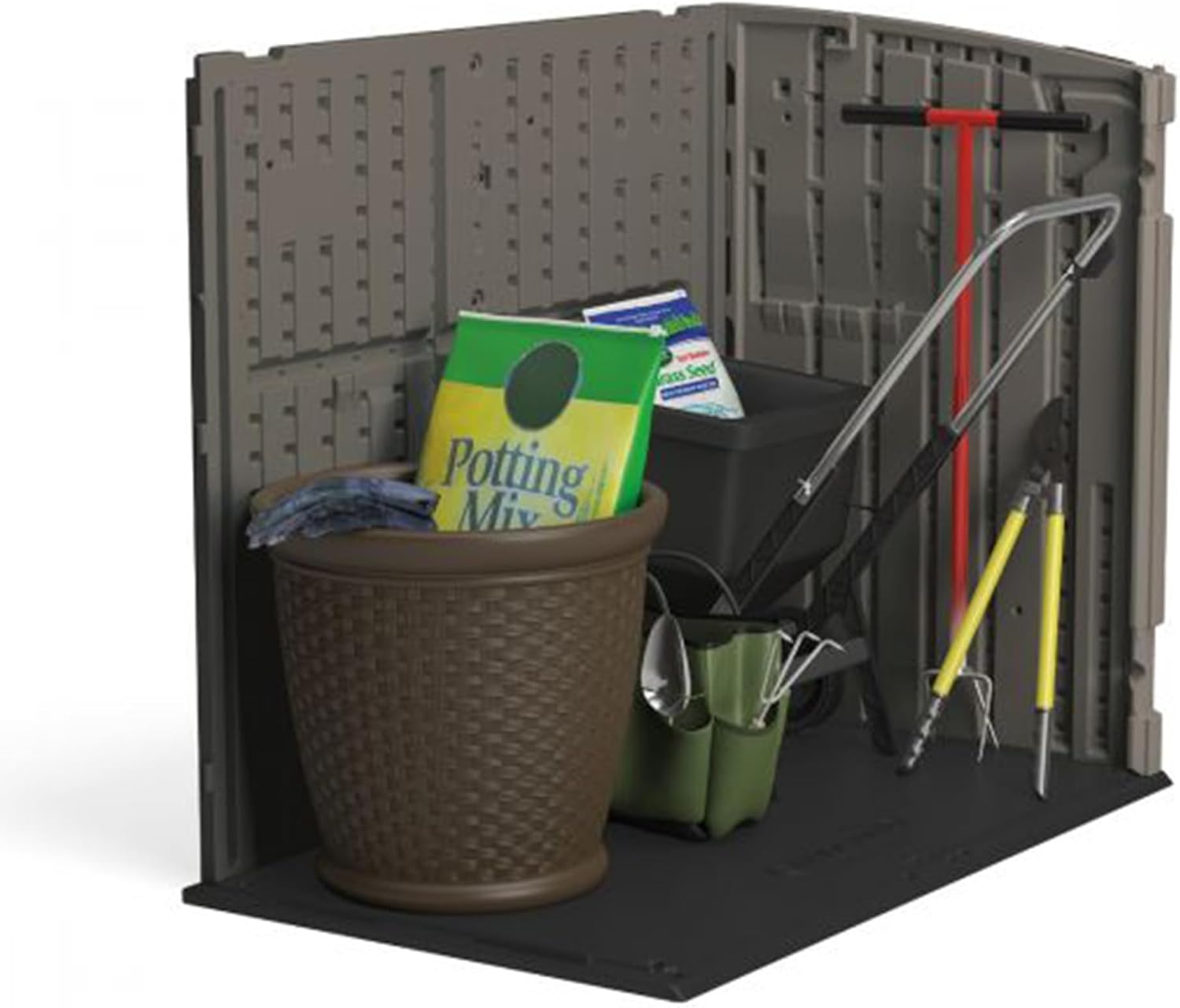 - Spacious 4-foot by 2.5-foot storage shed showcases a simple, modern design, great for any backyard space