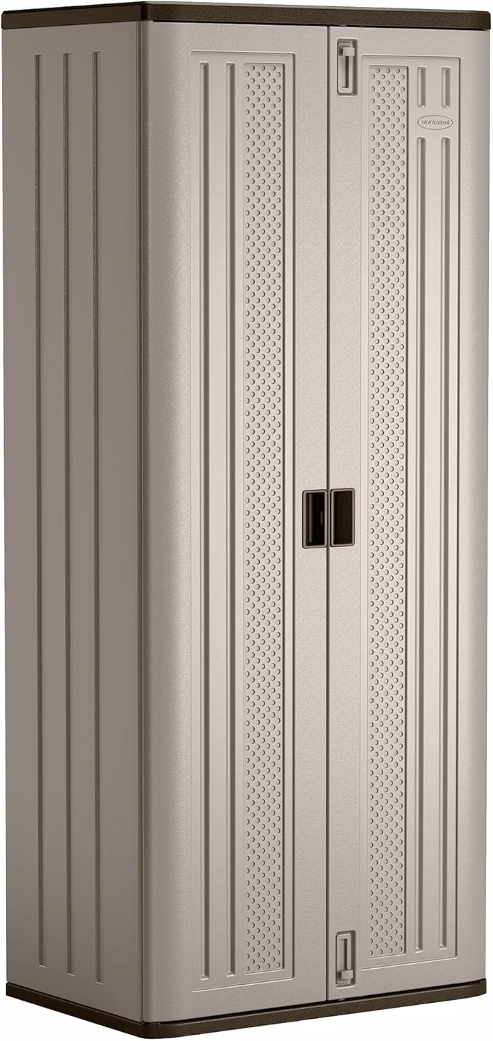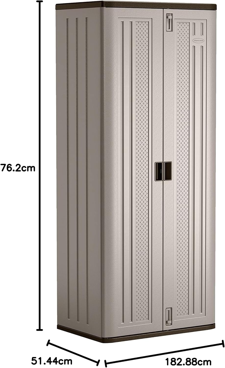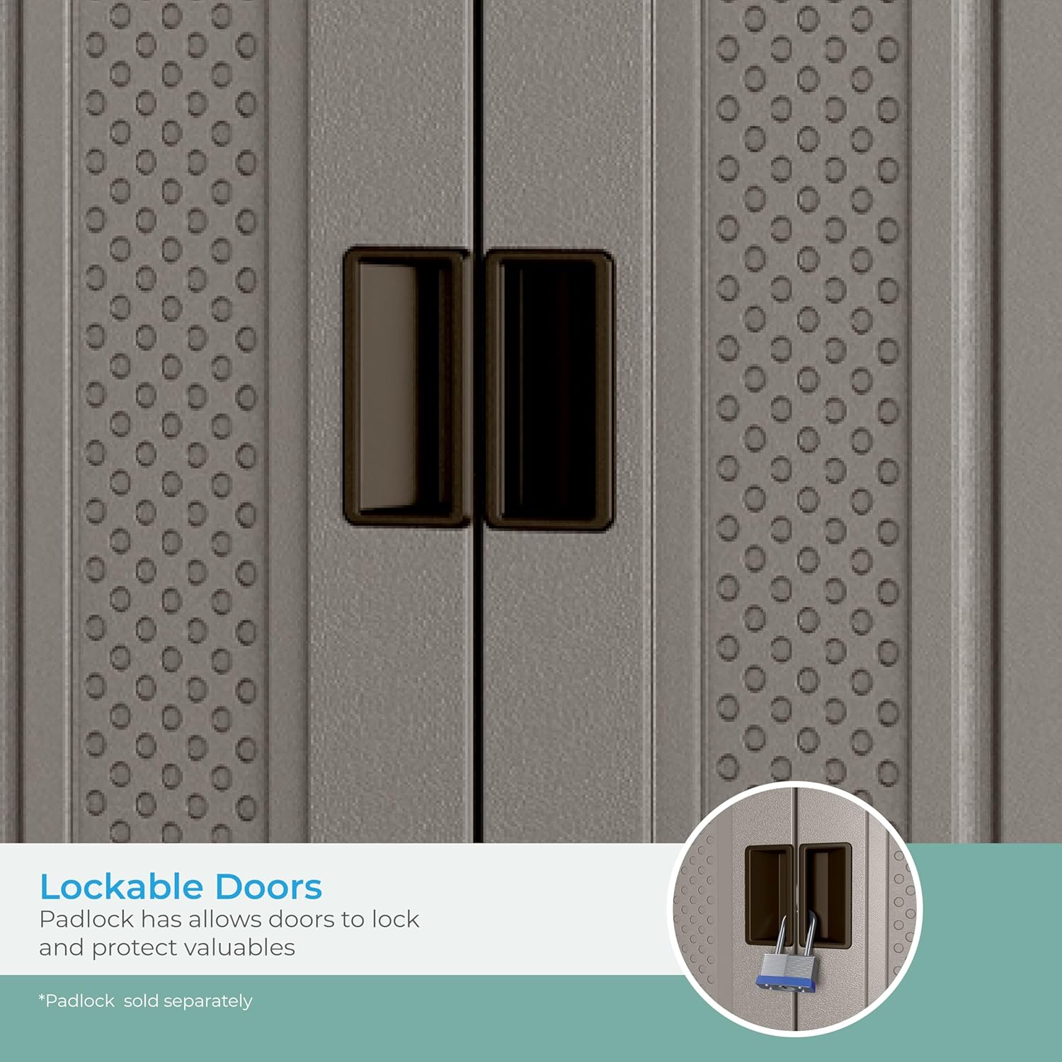- DURABLE CONSTRUCTION: Built with double-wall resin panels that resist warping, rusting, and denting, this tall outdoor storage cabinet is engineered to withstand tough conditions in both indoor and outdoor settings