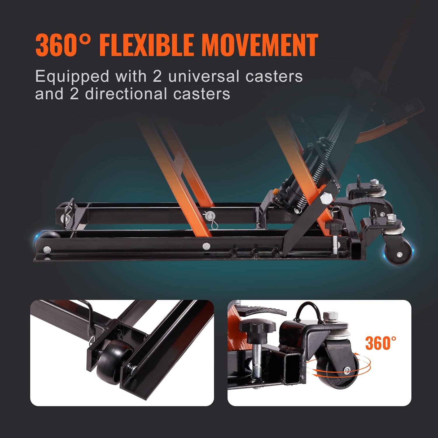• Hydraulic Motorcycle Lift Jack 1500 LBS Capacity ATV Scissor Lift Jack Portable Motorcycle Lift Table with 4 Wheels Hydraulic Foot-Operated Hoist Stand for Motorcycle ATV UTV Powersports